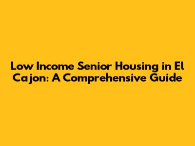 Low Income Senior Housing In El Cajon: A Comprehensive Guide