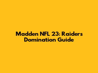 Madden NFL 23: Raiders Domination Guide