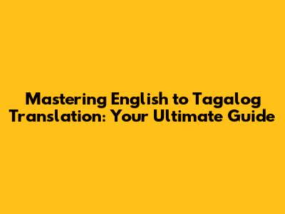 Mastering English To Tagalog Translation: Your Ultimate Guide