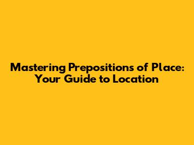 Mastering Prepositions Of Place: Your Guide To Location