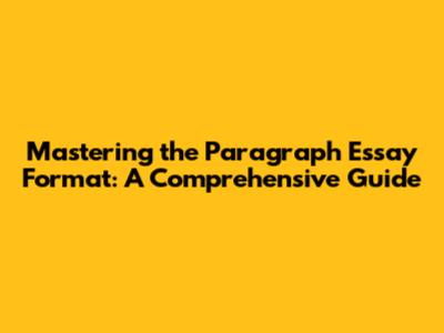 Mastering The Paragraph Essay Format: A Comprehensive Guide
