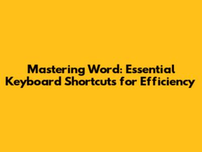 Mastering Word: Essential Keyboard Shortcuts For Efficiency