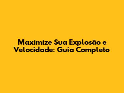 Maximize Sua Explosão E Velocidade: Guia Completo