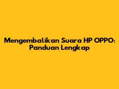 Mengembalikan Suara HP OPPO: Panduan Lengkap