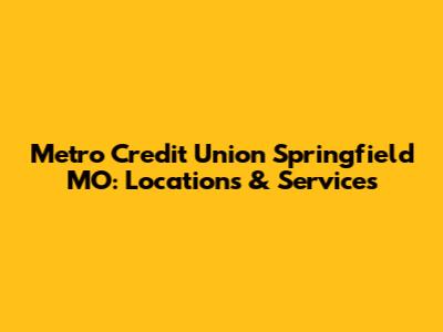 So, there you have it! Metro Credit Union in Springfield, MO, offers a range of services and benefits that make it a strong contender for your financial needs. With multiple locations, comprehensive services, and a member-focused approach, it’s worth considering if you’re looking for a new credit union. Always remember to do your own research and compare different financial institutions to find the one that best fits your specific situation. Happy banking, guys!