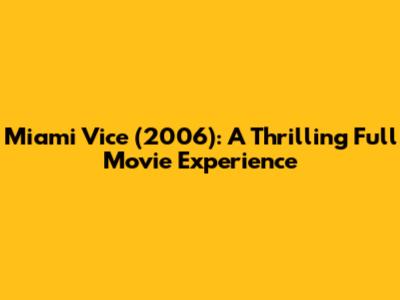 Miami Vice (2006): A Thrilling Full Movie Experience