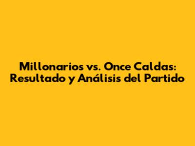 Millonarios Vs. Once Caldas: Resultado Y Análisis Del Partido