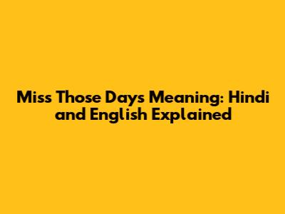 Miss Those Days Meaning: Hindi And English Explained