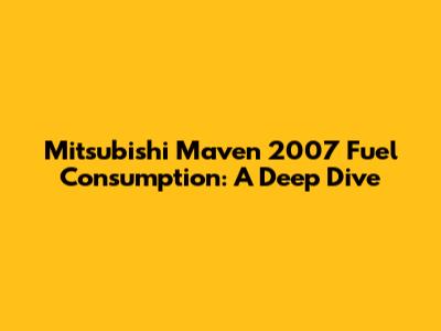 Hey guys! Let's talk about the Mitsubishi Maven 2007 and its fuel consumption. If you're considering buying one or already own it, you're probably curious about how it performs in terms of fuel efficiency. Understanding the fuel consumption of your vehicle is crucial for budgeting and making informed decisions about your transportation needs. The Mitsubishi Maven, a popular MPV (Multi-Purpose Vehicle), has been a reliable choice for many families and businesses alike. However, like any vehicle, its fuel consumption can vary based on several factors, including driving habits, maintenance, and road conditions. In this comprehensive guide, we’ll explore the various aspects of fuel consumption for the 2007 Mitsubishi Maven, providing you with practical insights and tips to optimize its performance.