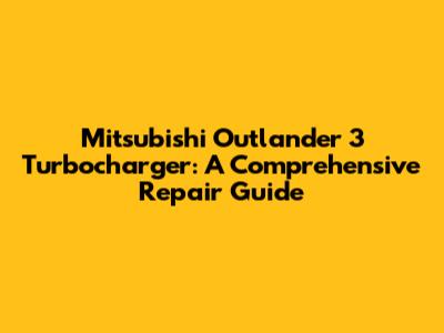 Mitsubishi Outlander 3 Turbocharger: Guide To Repair