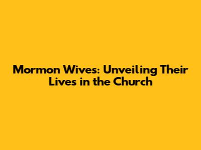 Mormon Wives: Unveiling Their Lives In The Church