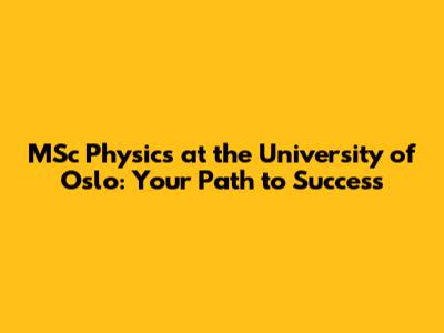 MSc Physics: University Of Oslo - Your Path To Success