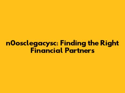 N0osclegacysc: Finding The Right Financial Partners
