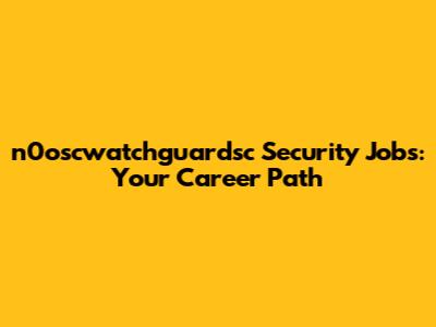 N0oscwatchguardsc Security Jobs: Your Career Path