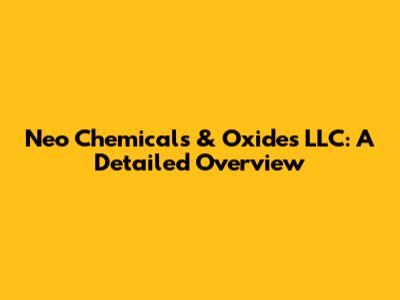 Neo Chemicals & Oxides LLC: A Detailed Overview