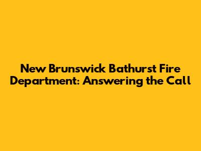 New Brunswick Bathurst Fire Department: Answering The Call