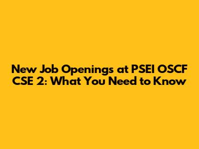 New Job Openings At PSEI OSCF CSE 2: What You Need To Know