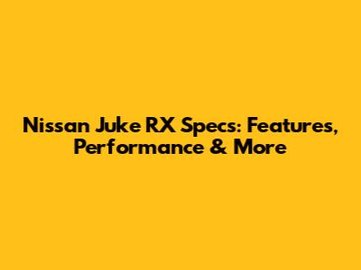 Nissan Juke RX Specs: Your Guide To Features & Performance