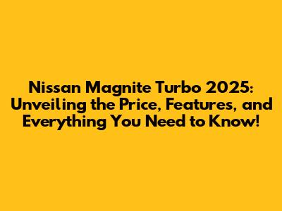 Hey everyone! Are you guys excited about the Nissan Magnite Turbo 2025? I know I am! This subcompact SUV has been making waves, and for good reason. It's stylish, packed with features, and offers a lot of value for your money. But the big question on everyone's mind is: What's the price gonna be? Well, let's dive into everything we know so far about the Nissan Magnite Turbo 2025, including the expected price, features, and some insider info.