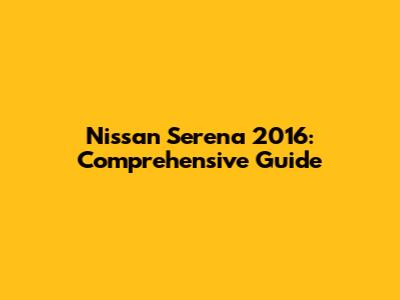 Nissan Serena 2016: Comprehensive Guide