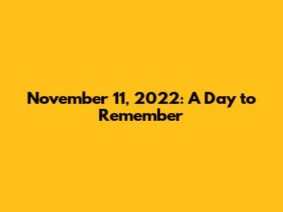 November 11, 2022: What Day Was It?