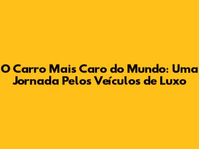 O Carro Mais Caro Do Mundo: Uma Jornada Pelos Veículos De Luxo