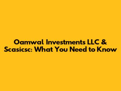 Oamwal Investments LLC & Scasicsc: What You Need To Know