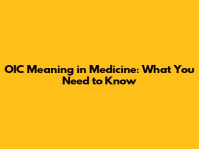 OIC Meaning In Medicine: What You Need To Know