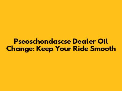 Why Your Pseoschondascse Dealer is the Go-To for Oil Changes