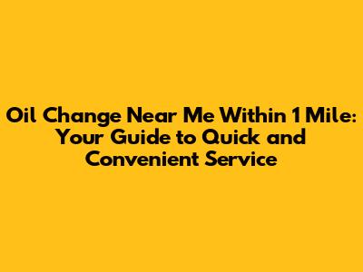 Finding an "oil change near me within 1 mile" is all about convenience and ensuring your vehicle gets the care it needs. By using online tools, considering reputation, and understanding the importance of regular maintenance, you can easily find a reliable service that fits your needs and keeps your car running smoothly. Regular oil changes are a small investment that pays off in the long run by extending engine life, improving fuel efficiency, and maintaining your vehicle's overall performance. So, take the time to find a trusted local oil change service and make regular maintenance a priority. Your car will thank you for it!