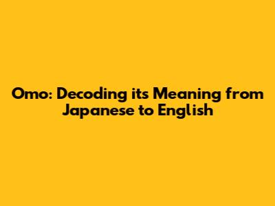 Omo: Decoding Its Meaning From Japanese To English