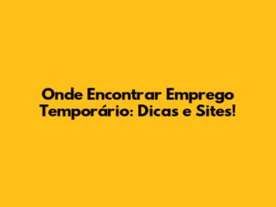 Onde Encontrar Emprego Temporário: Dicas E Sites!