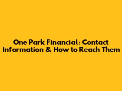 One Park Financial: Contact Information & How To Reach Them