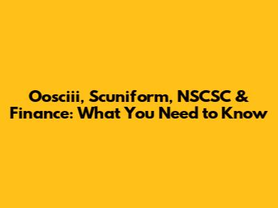 Oosciii, Scuniform, NSCSC & Finance: What You Need To Know