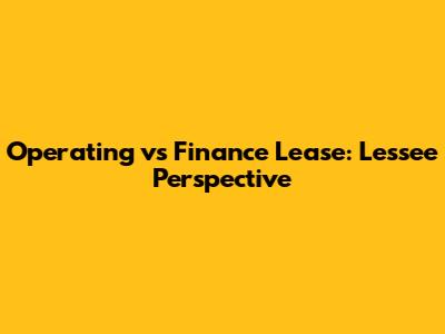 Operating Vs Finance Lease: Lessee Perspective