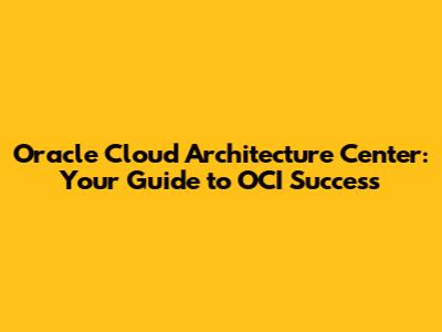 Oracle Cloud Architecture Center: Your Guide To OCI Success