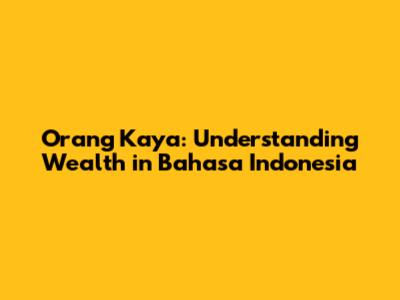 Orang Kaya: Understanding Wealth In Bahasa Indonesia