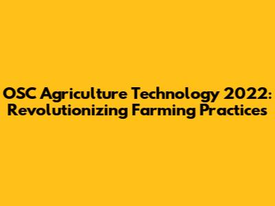 OSC Agriculture Tech: Innovations In 2022