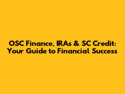 OSC Finance, IRAs & SC Credit: Your Guide To Financial Success
