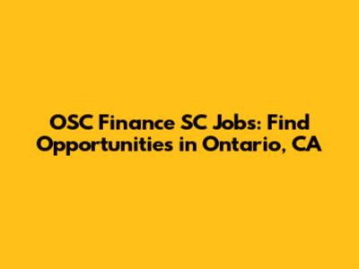 OSC Finance SC Jobs: Find Opportunities In Ontario, CA