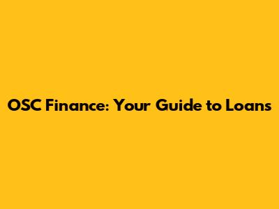 OSC Finance: Your Guide To Loans