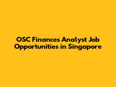 OSC Finances Analyst Job Opportunities In Singapore