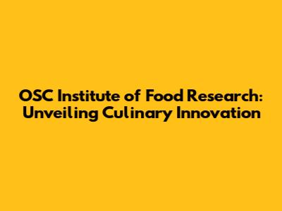 OSC Institute Of Food Research: Unveiling Culinary Innovation