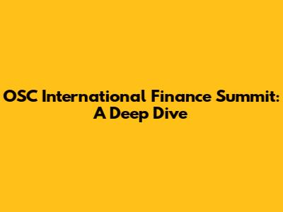 OSC International Finance Summit: A Deep Dive