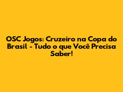 OSC Jogos: Cruzeiro Na Copa Do Brasil - Guia Completo!