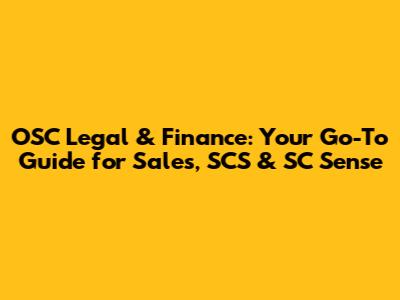 OSC Legal & Finance: Sales, SCS & SC Sense Unveiled