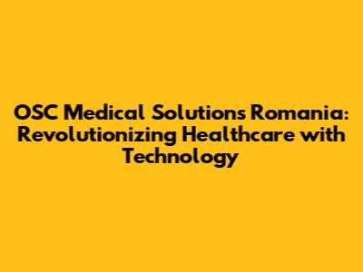 OSC Medical Solutions Romania: Revolutionizing Healthcare With Technology
