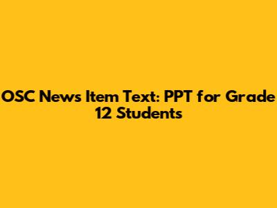 OSC News Item Text: PPT For Grade 12 Students
