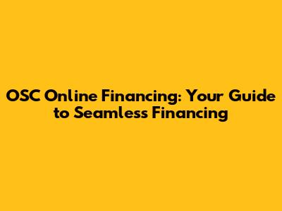 OSC Online Financing: Your Guide To Seamless Financing