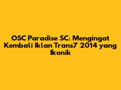 OSC Paradise SC: Mengingat Kembali Iklan Trans7 2014 Yang Ikonik
